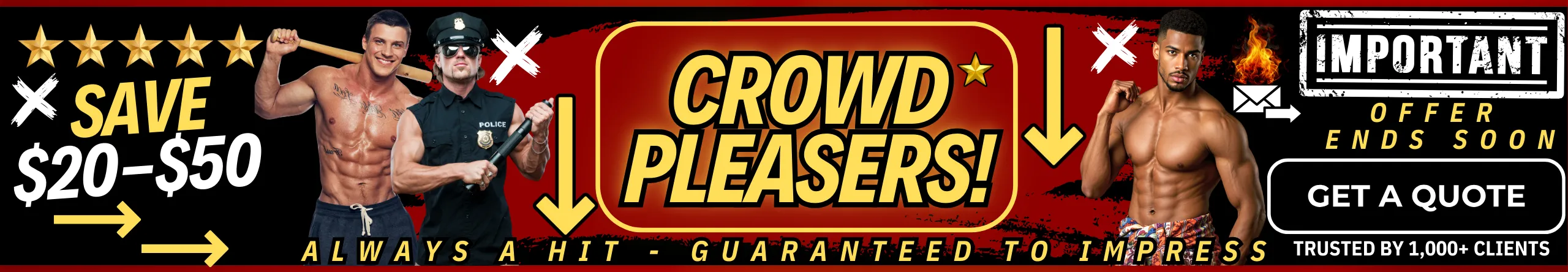 Pick your package, select your outfit themes, and choose your favorite entertainers. You can list your top choices and backup options, as well as ethnicity preferences, so we can match you with the best talent available.